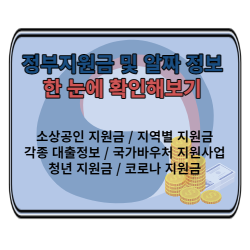 소상공인 지원금, 코로나 지원금, 국가바우처 지원사업, 각종 대출정보, 지역별 지원금, 청년 지원금 섹터로 정리해 보았고 실시간으로 정보들을 빠르게 업데이트 하려고 합니다. 3분만 꼼꼼하게 확인하신다면 수십, 수백가지의 정보들을 통해 수백만원 이상의 가치를 얻어가실 수 있습니다.